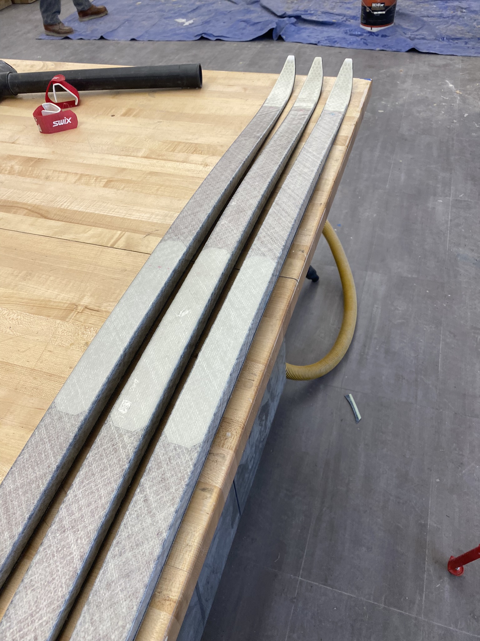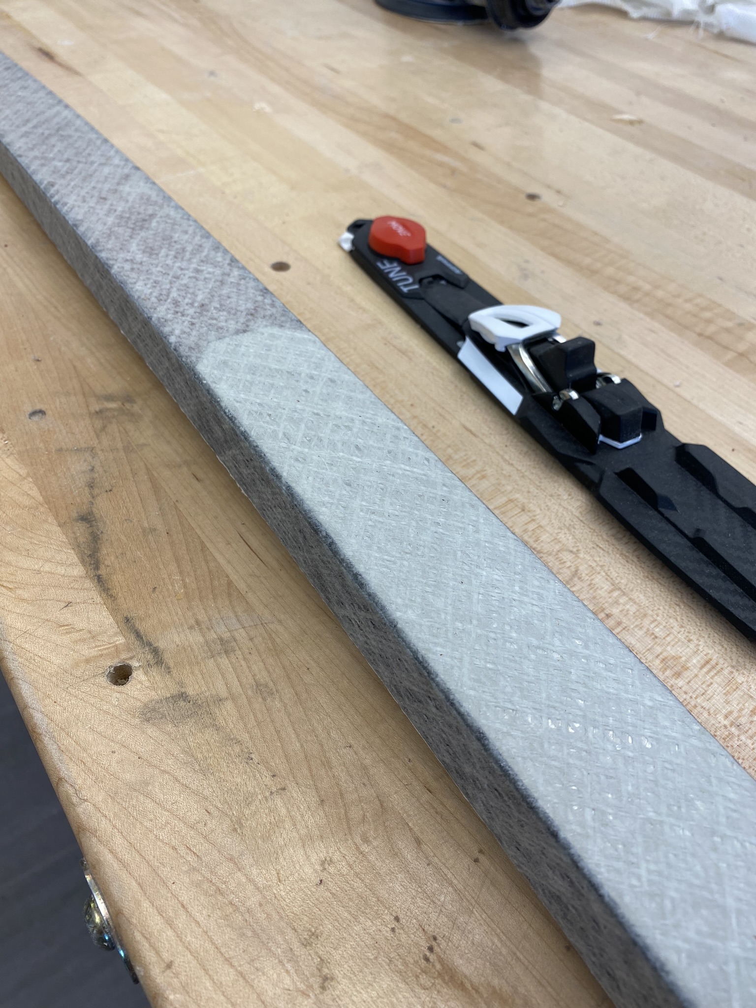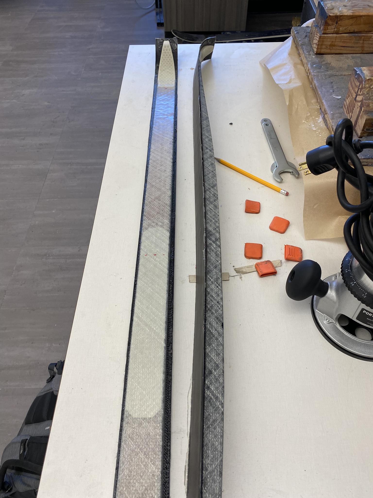 It wasn’t pictured but this is also where I implanted a programmable NFC tag at the front of each ski, between the base and the core. The purpose of this was to be able to store data relating to the ski, like wax history.
