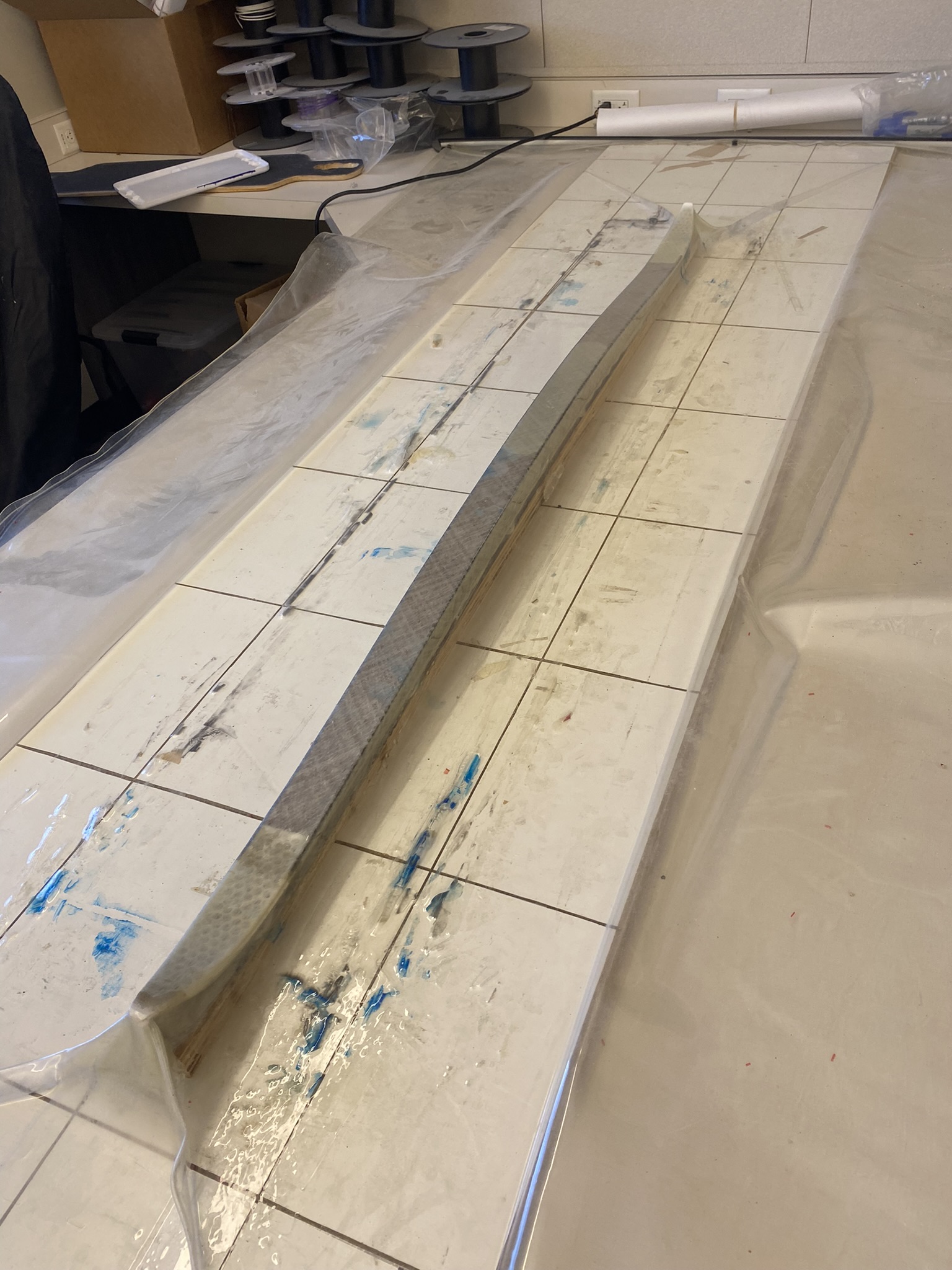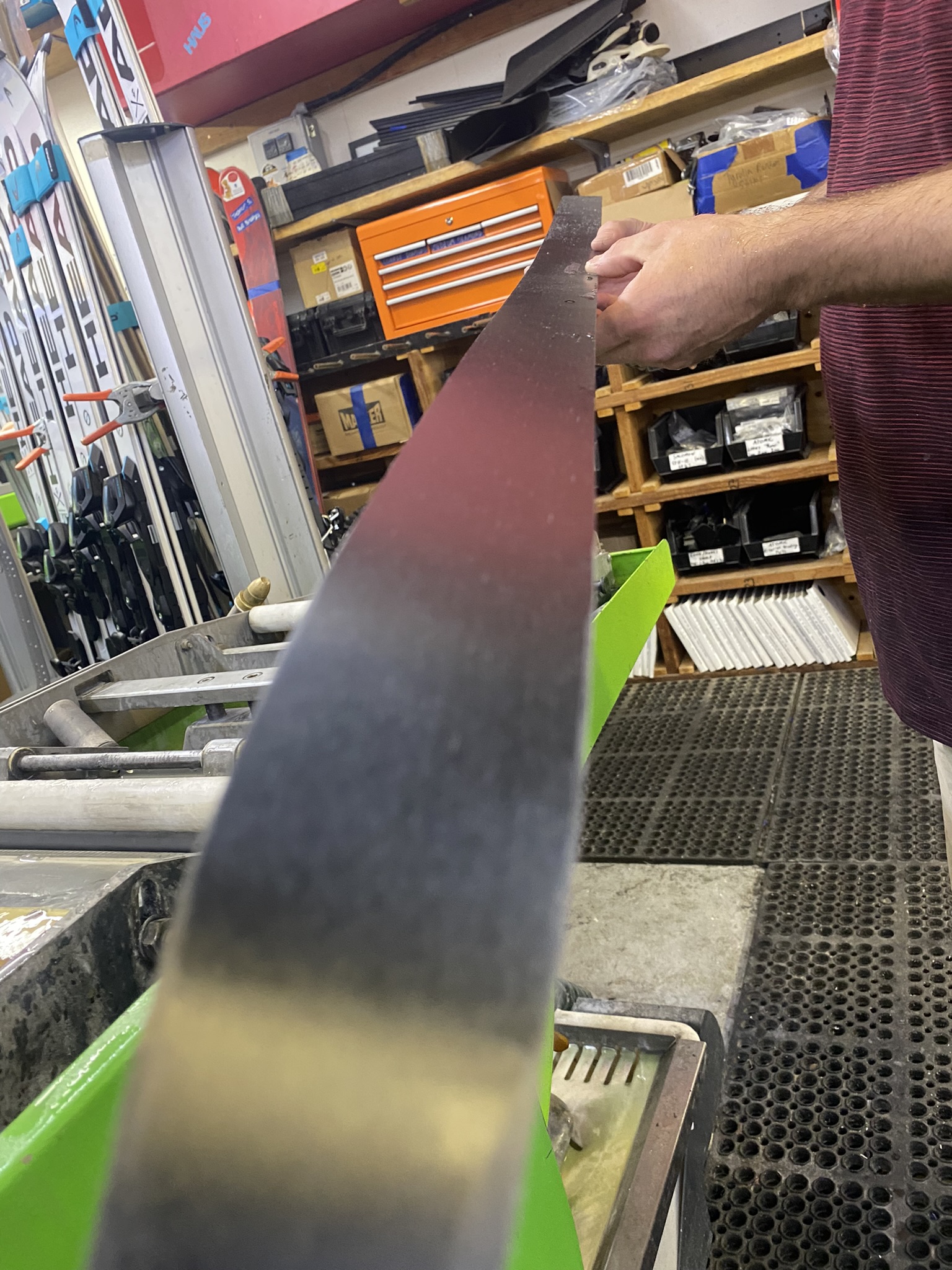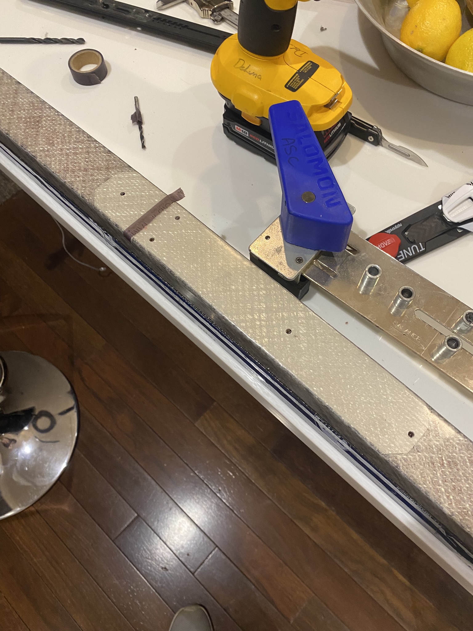 It wasn’t pictured but this is also where I implanted a programmable NFC tag at the front of each ski, between the base and the core. The purpose of this was to be able to store data relating to the ski, like wax history.