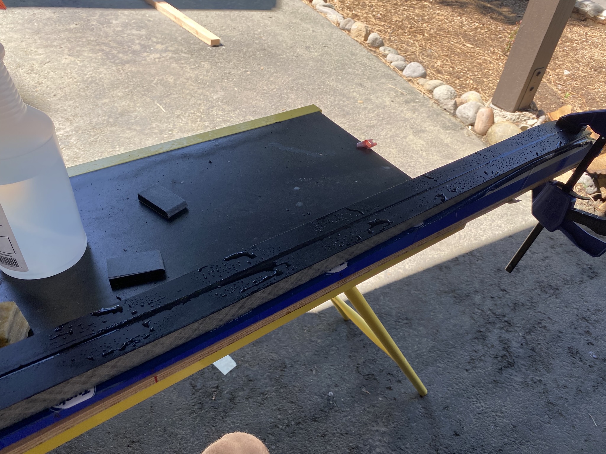 Next I applied the base. I wanted to make sure that the fiberglass was easily visible, so for this portion I added black dye to the resin.